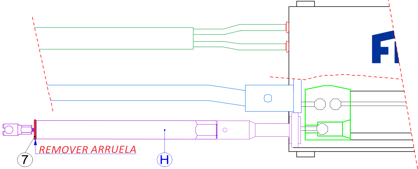 . Após a montagem completa do cabo no veículo, deve remover a arruela [7] para destravar o cabo [H] e liberar o funcionamento do sistema.